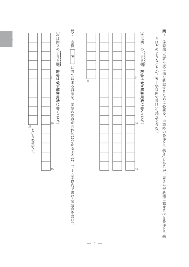記述問題としては大きく3問((20~30字程度、40~50字程度、80~120字程度の3問)が出題される予定です、